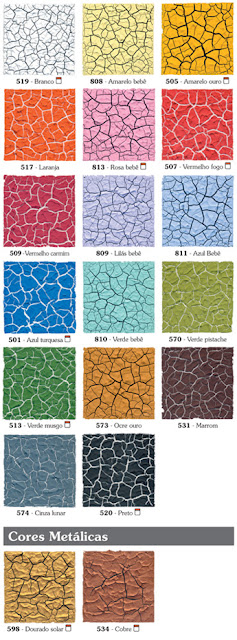 Abaixo as tabela cores das Tintas Craquelex ACRILEX.