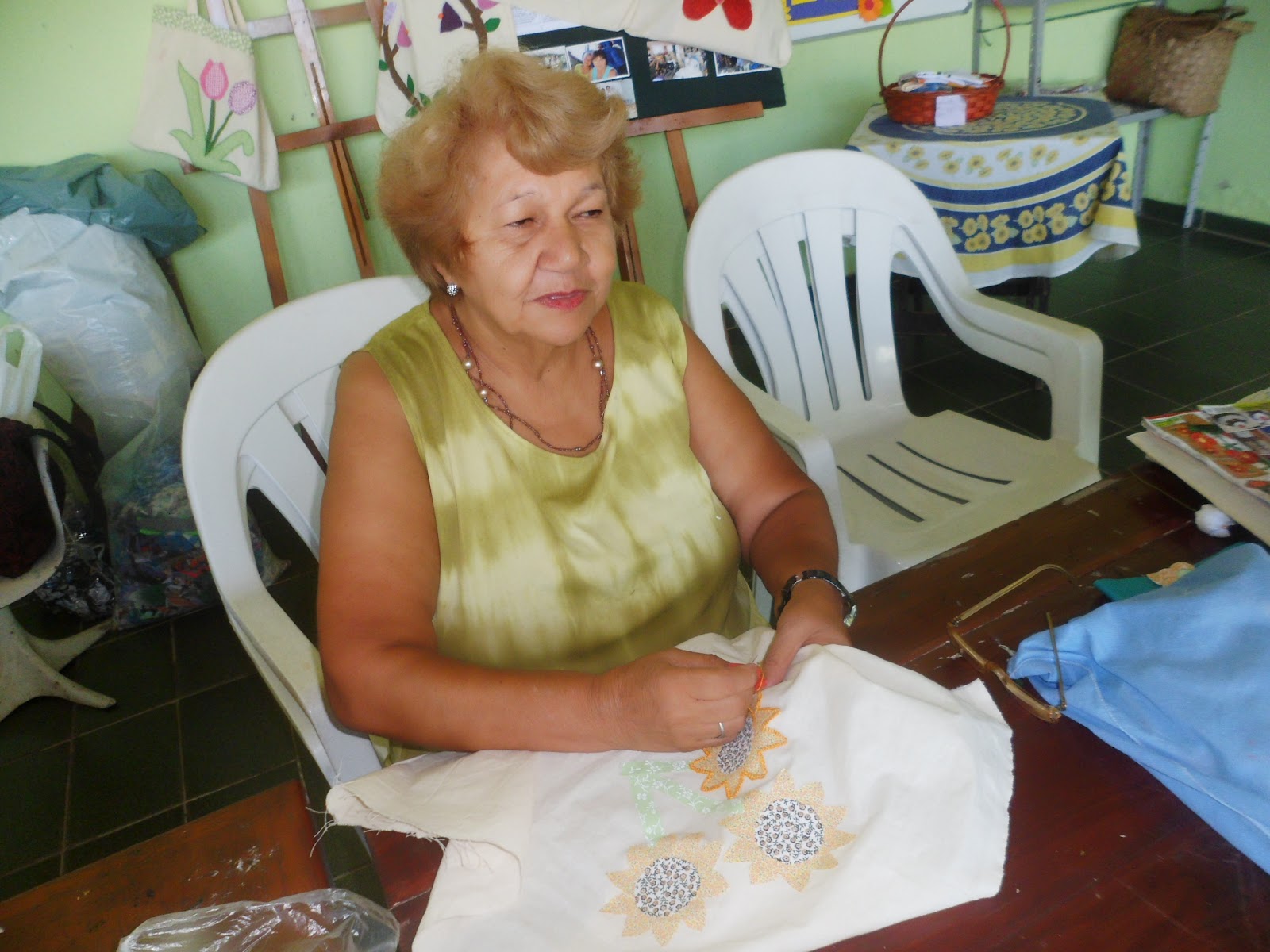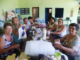 As bolsas aqui amostra foi feito pelas alunas Marilene e Vera.